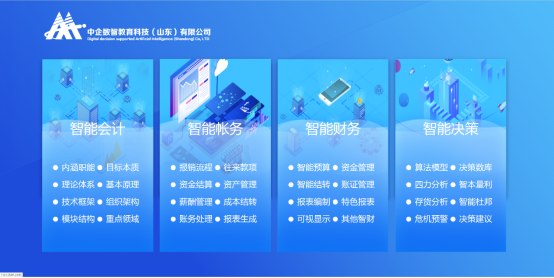 中企数智教育科技(山东)有限公司是由北京大学、复旦大学、山东大学等高校会计学/经济学博士、二级教授、会计学博士生导师、国家社会科学重大研究项目首席专家、具有20多年会计学教学经验教师和资深行业专家、央企系统架构师和大数据分析师、在校会计学博士生等共同创办的智能会计系统开发、大数据决策模型设计,智能算法、智能会计机器人研发,各类高校智能会计教学方案、人才培养方案设计,智能会计系列教材编写与实训教程、软件开发,各企事业单位智能会计人才培养、智能会计软件开发和解决方案等的高校师资、企事业财会人员、高级管理人员培养、大学生职业技能拓展赋能的专业机构。公司致力于解决各高校和企事业单位转型过程中所面临的“缺师资、缺教材、缺方案、缺软件、缺人才”等现实问题,助力 转型升级和健康发展。